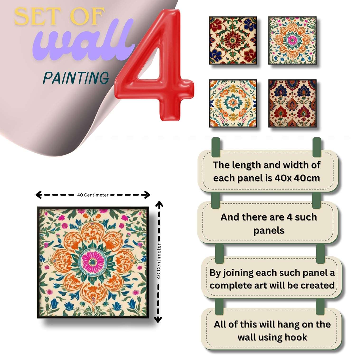 This captivating wall painting seamlessly blends traditional artistry with contemporary design, making it a perfect addition to any modern living space. Crafted with meticulous attention to detail, it features intricate patterns and vibrant colors that evoke a sense of harmony and cultural richness. Ideal for enhancing the ambiance of your home or office, this artwork serves as a testament to timeless craftsmanship and artistic expression.
